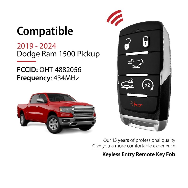 2 Keylessbest Replacement for 2019-2024 Dodge Ram 1500 Pickup Key Fob Remote Control OHT-4882056 6 Buttons 433.92MHz