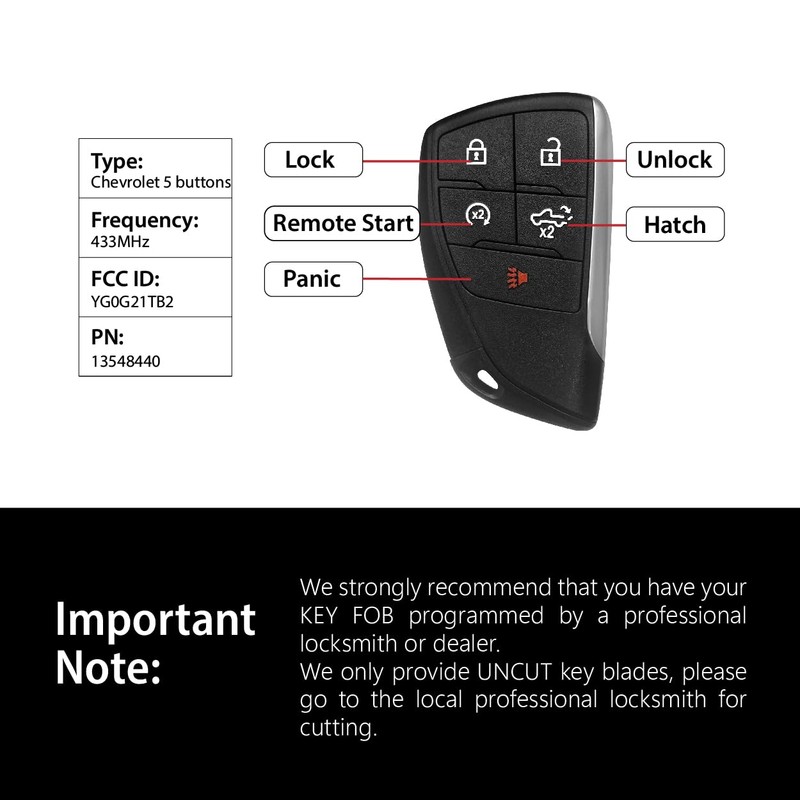 • Purchase Instructions: This is a brand-new, unprogrammed key, requiring programming by a locksmith.Make sure to verify the appearance of your original key, your vehicle's model and year, along with the FCC ID and part number on the back of your original key to ensure they match what's described on our website