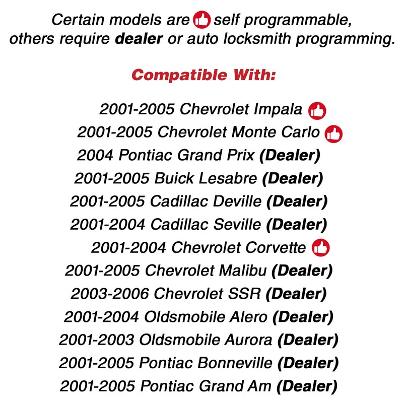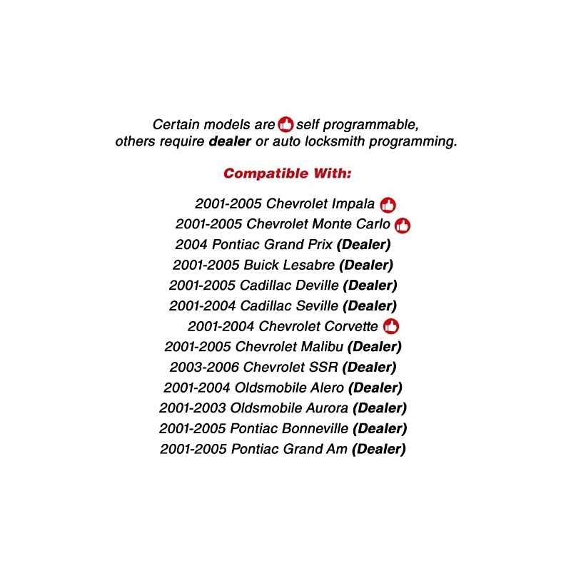 • Mando a distancia llegará listo para programa a su vehículo por un distribuidor o un Automotive Locksmith.