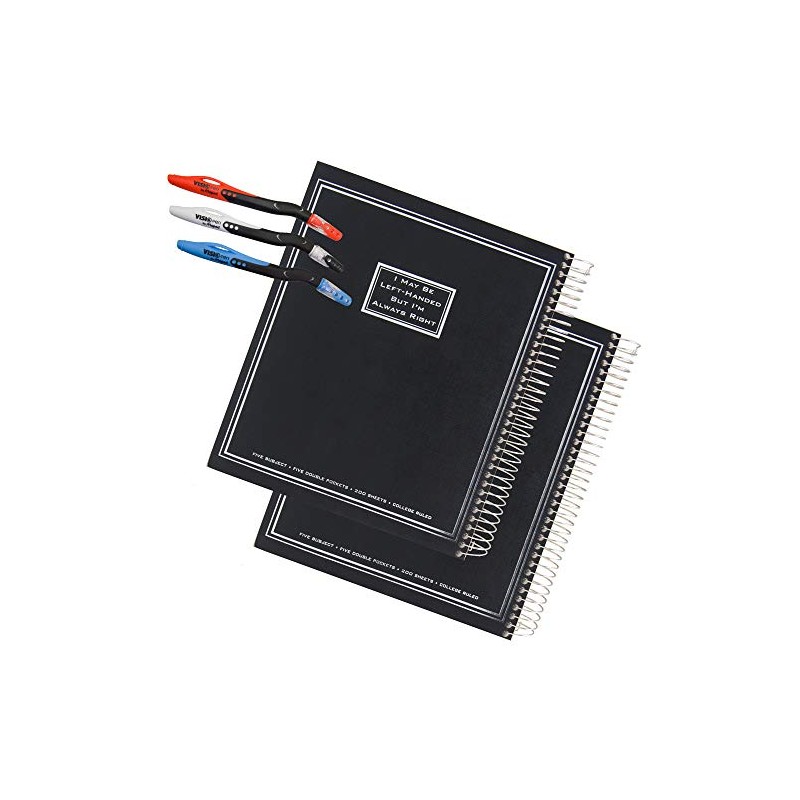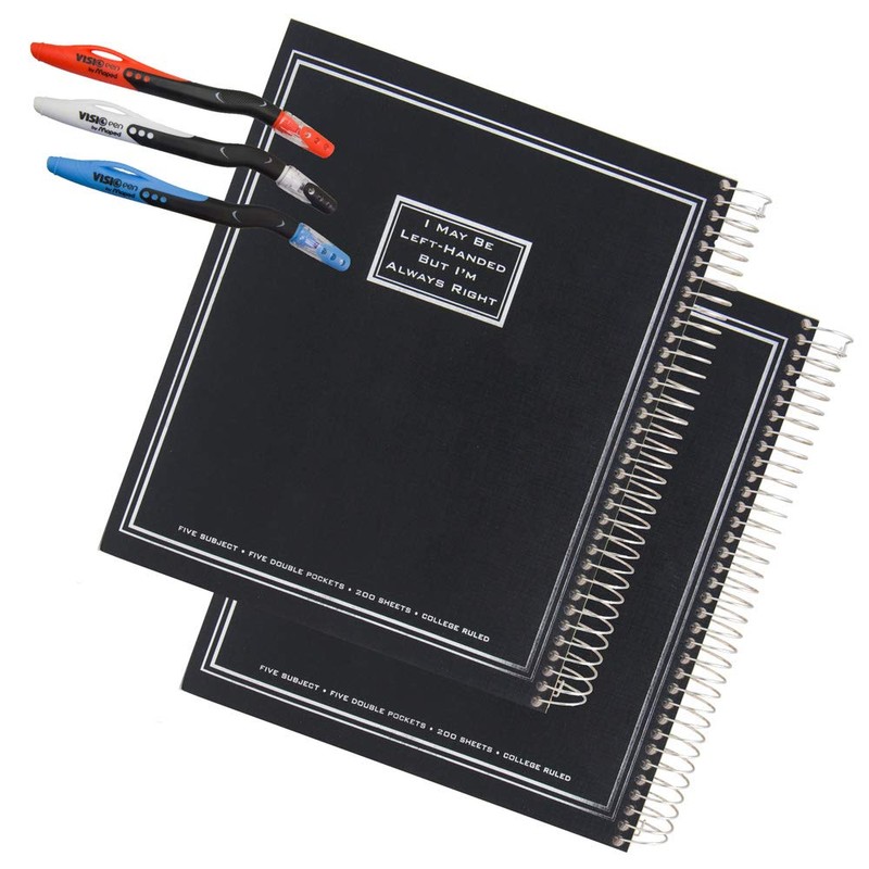 2 Left-Handed Five Subject College Ruled Notebooks With "I May Be Left-Handed But I Am Always Right" Saying Plus 3 Left-Handed Visio Pens