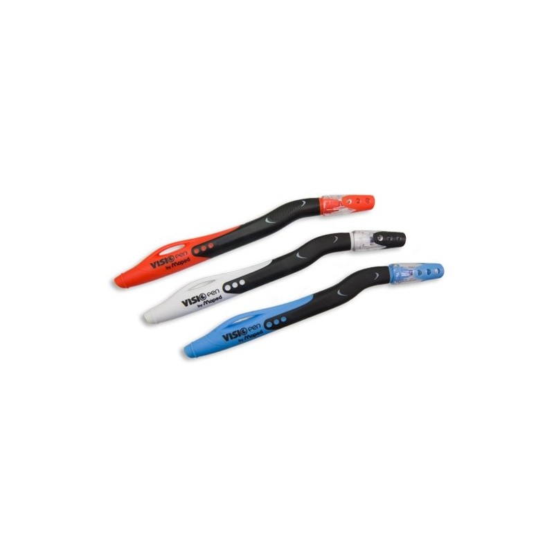 • The Maped Visio pen features a triangular, soft-touch grip ergonomically designed for left-handers to use with correct posture. This design works so well for lefties that they will not need to learn the painful "hook" writing position, so their posture will be good, and they'll be able to write for long periods without pain.