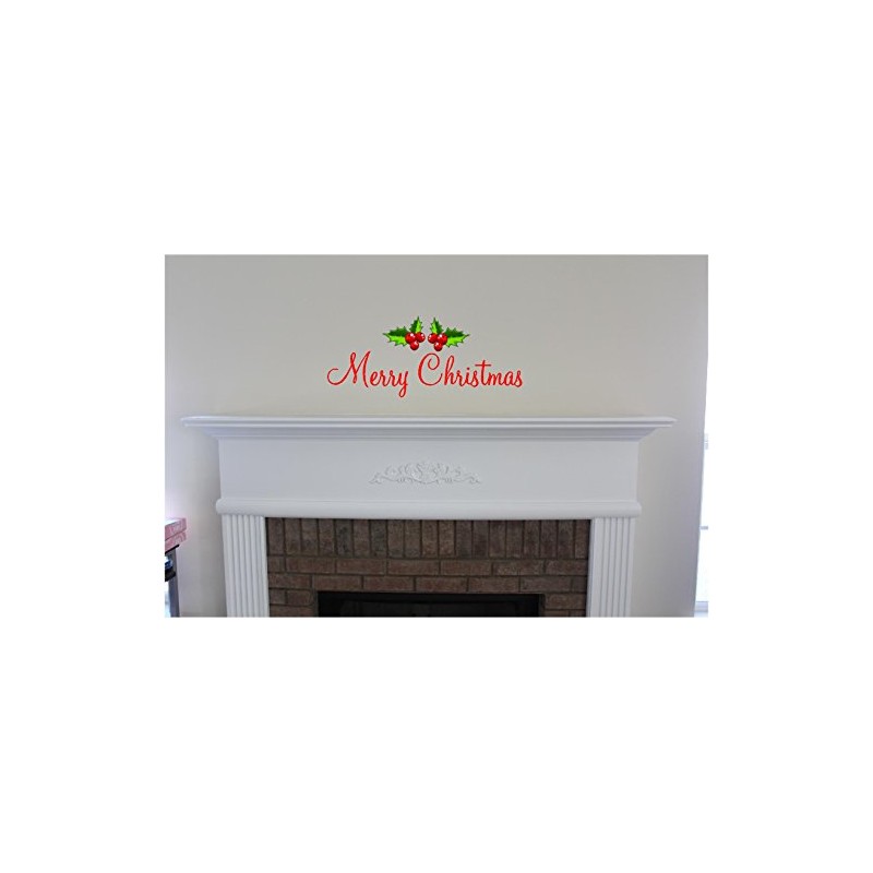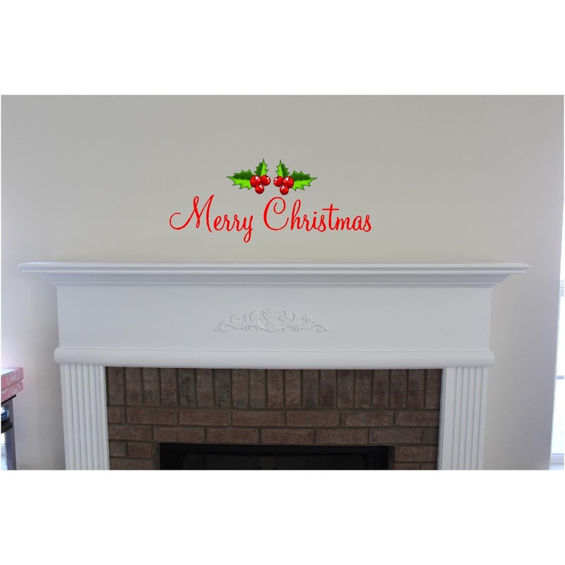 #2 Merry Christmas with Printed Mistletoes Red Vinyl Wall Decals Sayings Art Lettering