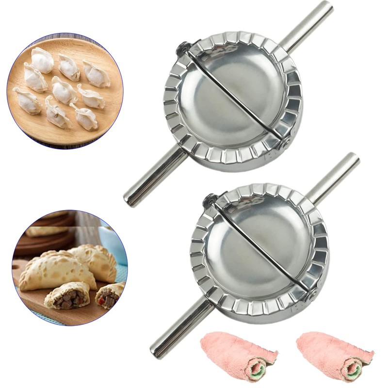 2 Moldes de Acero Inoxidable para Ravioli y Dumpling - Máquina de Pierogi XL 5 Pulgadas - Molde de Prensa Goya Empanada - Cortador de Masa Con Mango Largo
