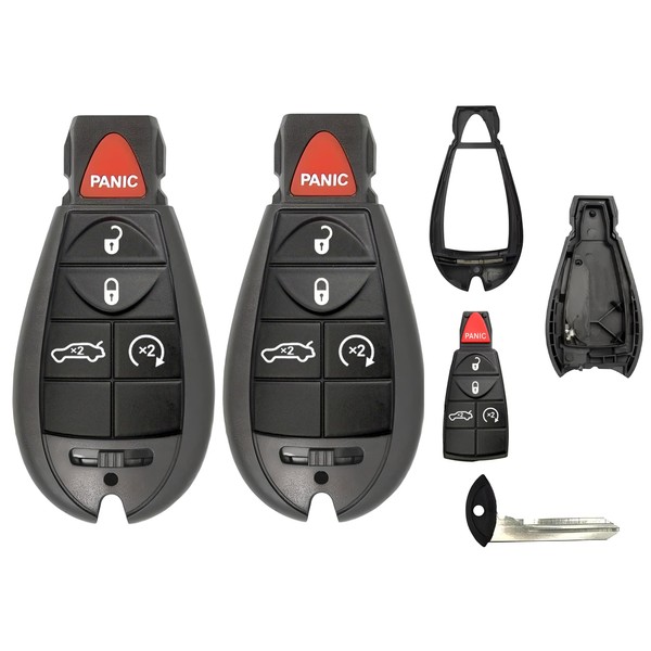 2 New Keyless Entry 5 Buttons Remote Start Car Key Fob Fobik Shell / CASE M3N5WY783X, IYZC01C for Chrysler 300 Challenger Charger Durango Grand Cherokee - (No Electronics or Chip Inside)