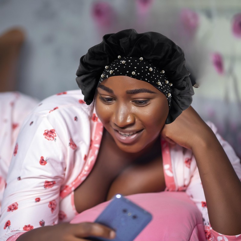 - Mejora tu rutina: Este gorro para dormir, más suave que la seda, añade un toque de lujo a tu rutina de cuidado personal. Protege tu cabello, mantenlo suave y sin enredos, y disfruta de un toque extra de estilo en tu rutina nocturna.