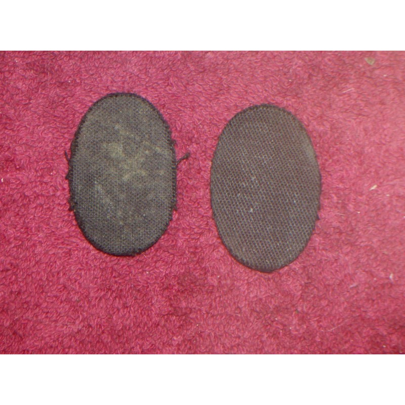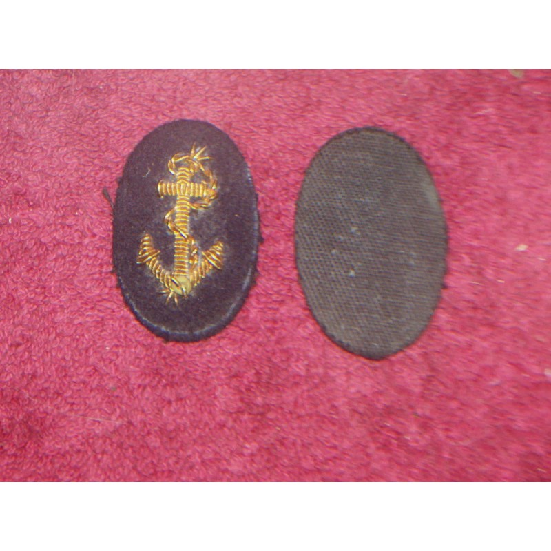 2 ORIGINAL UNISSUED WW II U.S. NAVY GOLD BULLION LINE OFFICER PATCHES . The insignias are made of gold colored thread on a dark blue / black wool material.The patches measures approx. 1 1/4 inches wide and 1 3/4 inches high. The 2 Original Unissued WW II U.S. Navy Gold Bullion Line Officer Patches are in near new condition. (Do to long term storage).