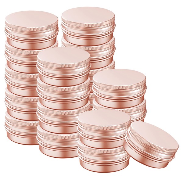 2 Ounce Aluminum Tin Jar with Screw Cap 60mL Tin Cans Refillable Containers for Cosmetic, Lip Balm, Cream, Lotion, Balms, Spices, Salve, Rose Gold 20 Pcs