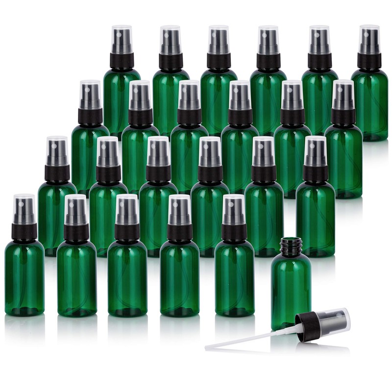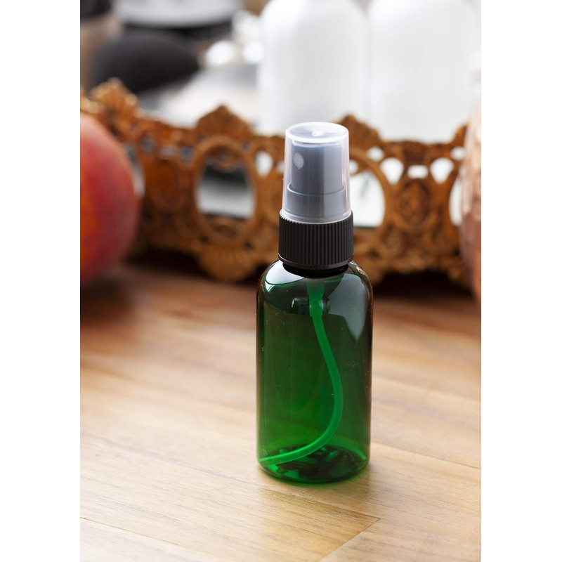 2 oz / 60 ml Green Plastic PET Boston Round Bottle (BPA Free) with Black Fine Mist Spray (24 pack)