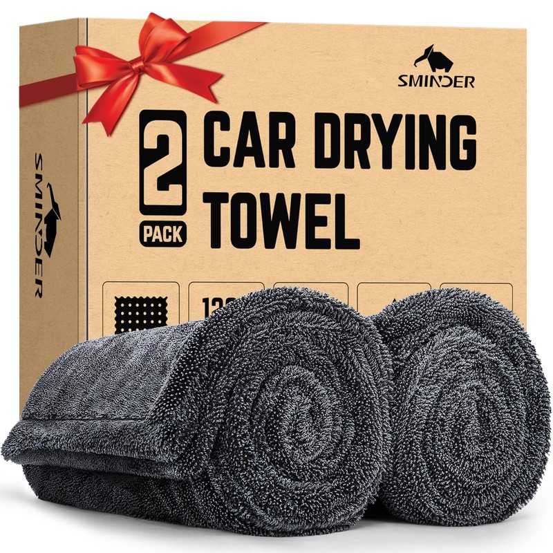 SMINDER 2-Pack 1200 GSM Car Drying Towels – Microfiber Towels for Cars (36" x 24"), Ultra-Absorbent, Streak-Free, Scratch-Free, No Water Spots, Double-Twist Pile & Edgeless Design