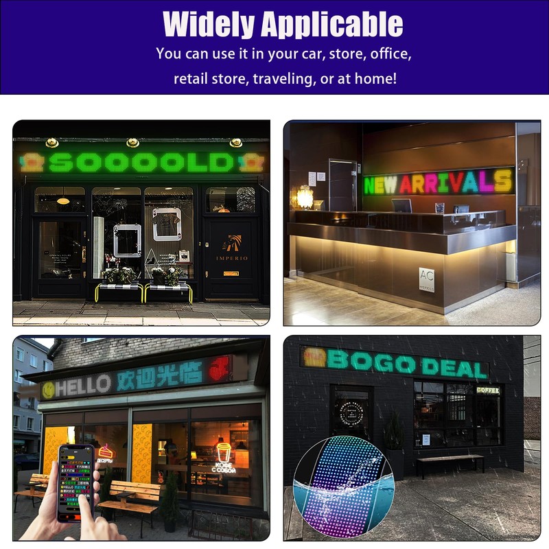 - Pro-Grade Customization - Upload GIFs, logos, or DIY patterns with intuitive app editor create unique light shows. Dual-layer circuit boards prevent overheating, while ultra-wide panels fit semi-truck windshields.