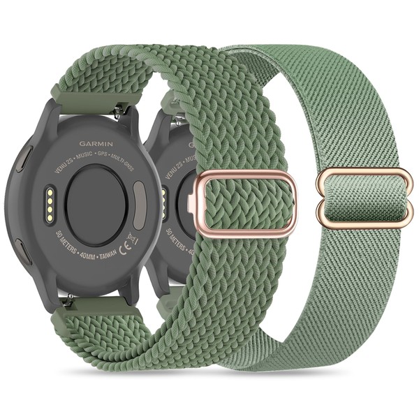 2 Pack 18mm Braided Stretchy Nylon Watch Bands Compatible with Garmin Venu 2S...