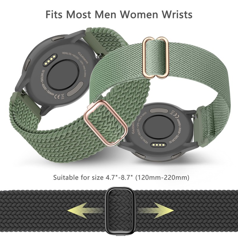 • 【Compatibility & Beauty】Our 18mm stretchy braided wristbands ONLY Compatible with Garmin Venu 2S/Venu 3S (NOT Venu/Venu 2/Venu 3), Vivoactive 4S 40mm/Vivomove 3S (NOT Vivoactive 5/4/3, Vivomove), Forerunner 255S/255S Music/265S(NOT Forerunner 255/255 Music/265), also fit for any watches with 18mm lugs. NOTE: Please check your watch model before purchasing.