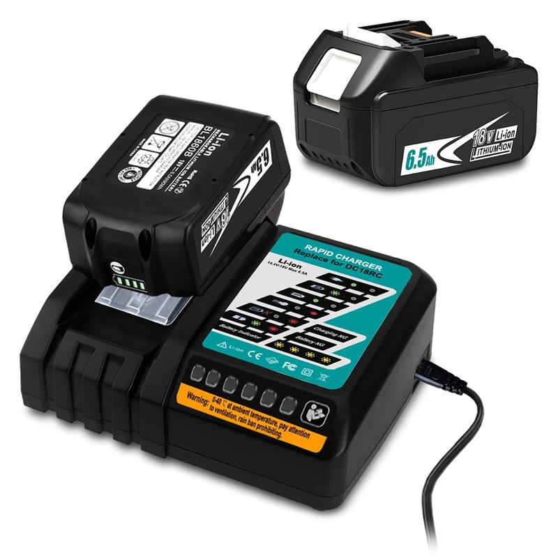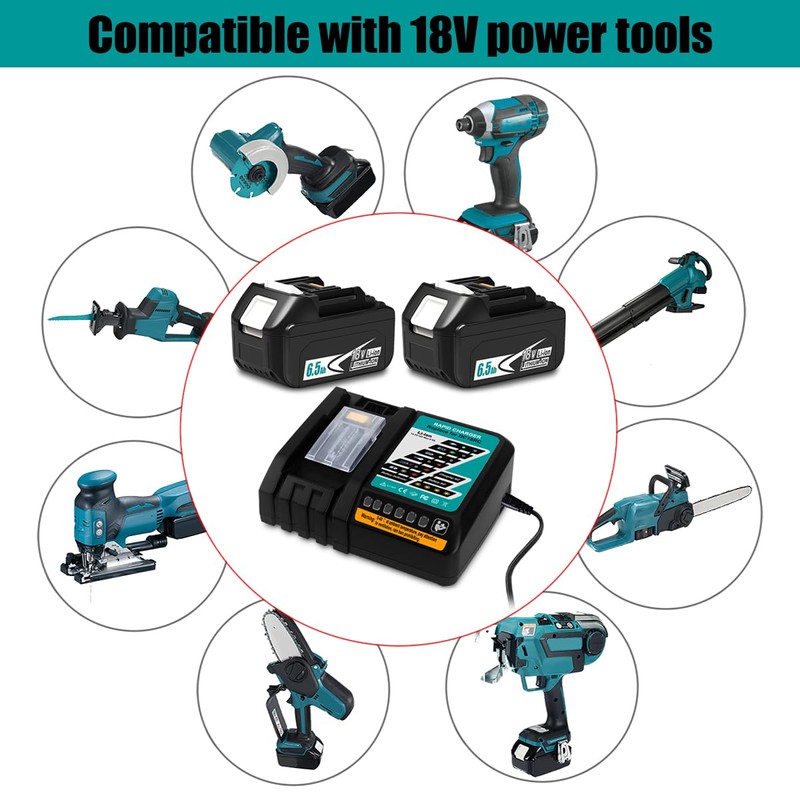 - ✅【BL1860B Battery and Charger Specs】 Battery Volts: 18V, Capacity: 6.5Ah(6500mAh)/117Wh, Type: Lithium-ion; Charger Output: 14.4V-18V 6.5A.