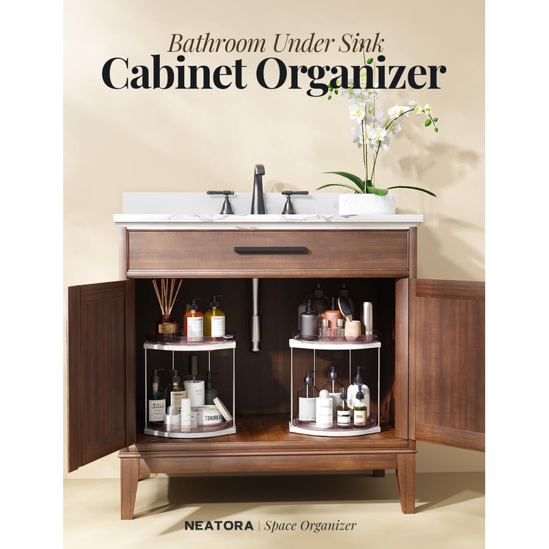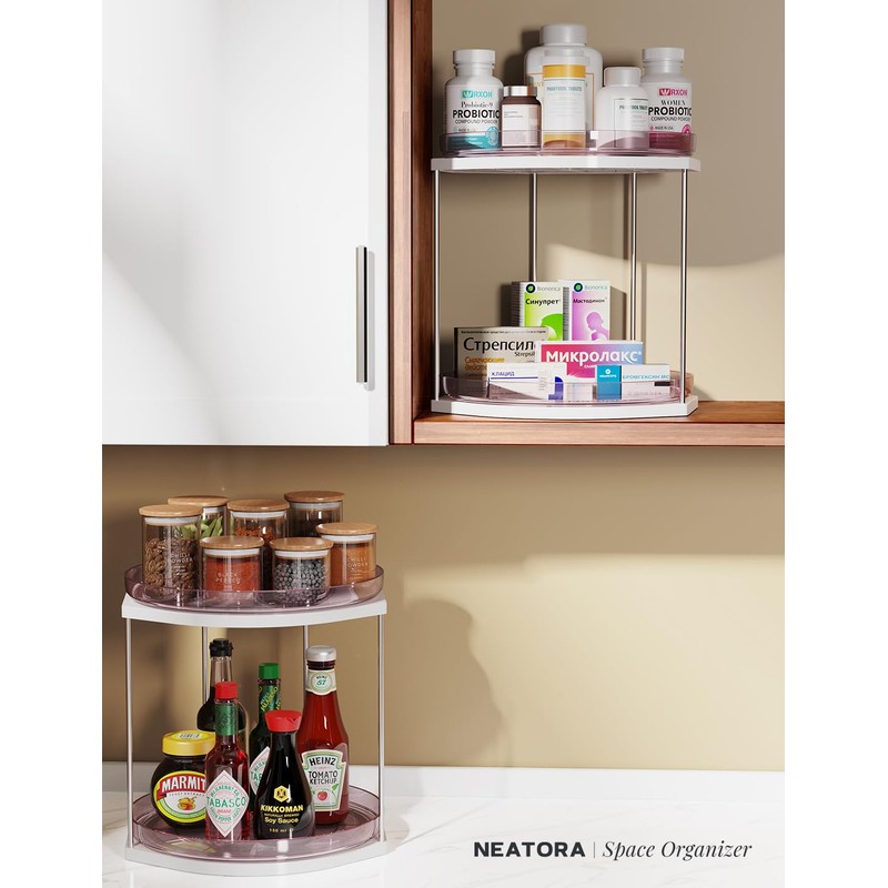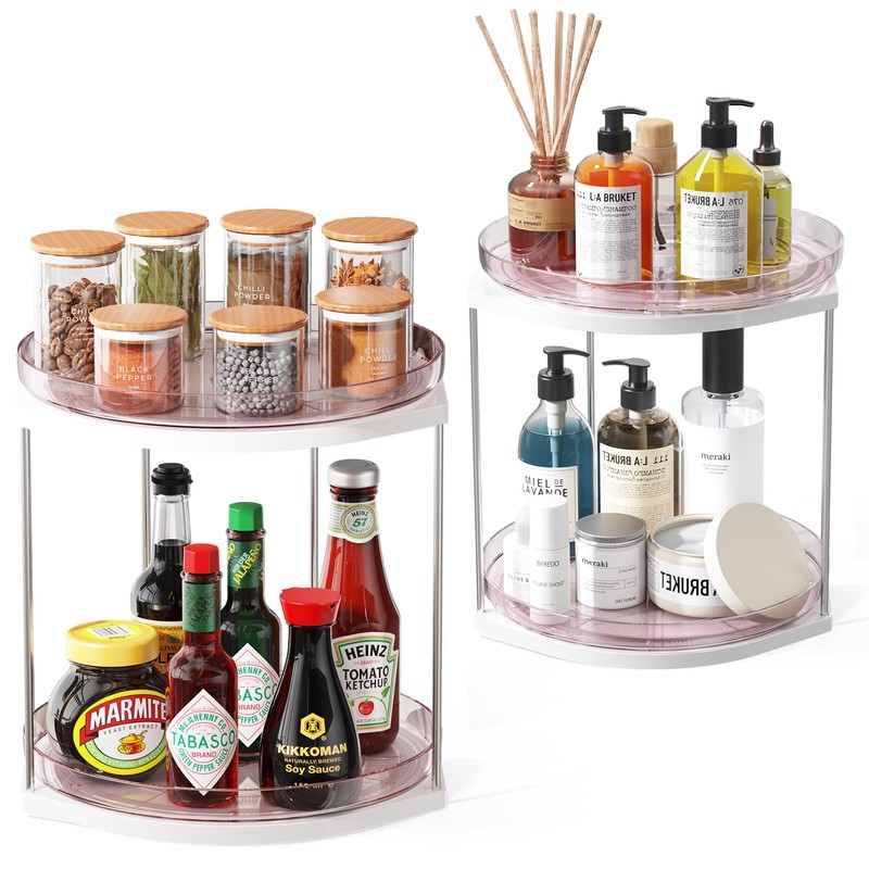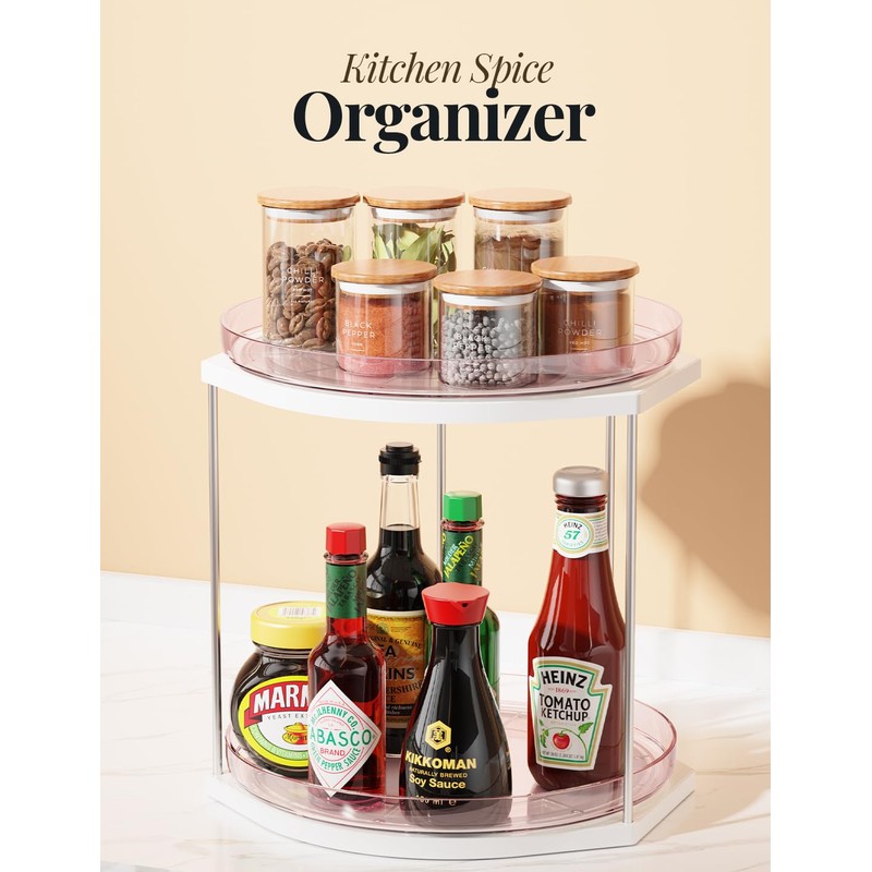 - Space-Saving & Sturdy 2-Tier Turntable – The double-layer design optimizes vertical space while ensuring stability with a non-slip base, making it perfect for cabinets, countertops, vanities, and pantry storage.