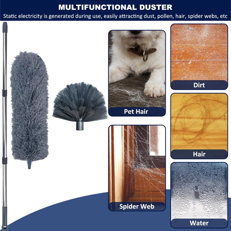 - Effective Dust Cleaning: Whether it's high ceilings/glass, exterior walls, fans, air conditioning vents, lampshades, household appliances, shutters, cars, our duster set will leave your home spotless.