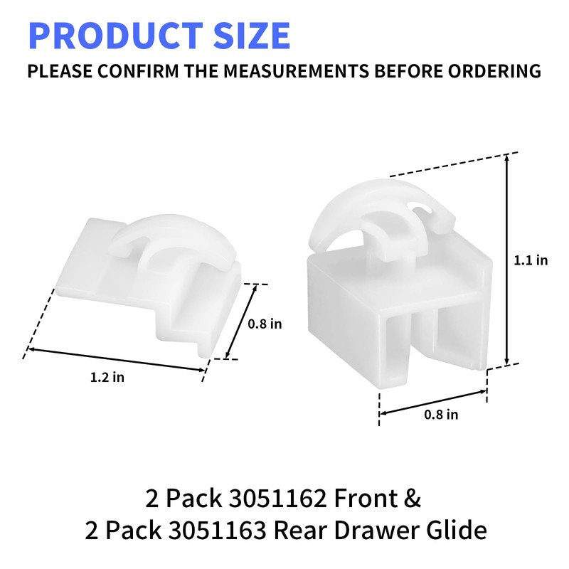 2 Pack 3051162 & 3051163 Range Oven Front and Rear Drawer Glide Replacement Kit Compatible with Kenmore and Frigidaire Ranges Replaces AP2121517 PS434226 PS434227
