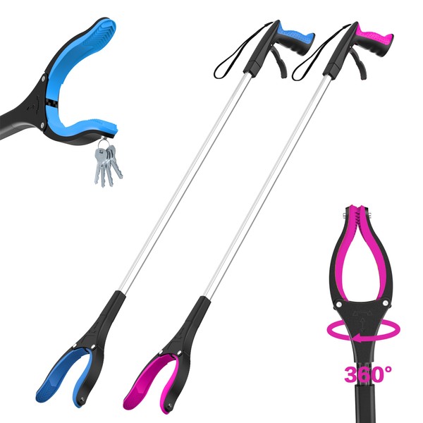 2-Pack 32inch Long Grabber Reacher Tool, Trash Picker Pick Up StickGrabbers for Seniors with 360° Rotating Jaw Magnets, 4" Wide Claw Opening Reacher Pickup Tool, Grabber Reacher Tool Heavy Duty