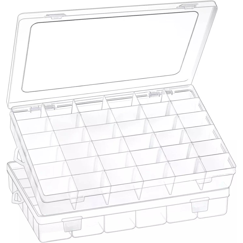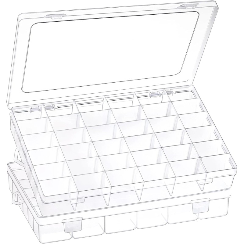 2 Pack 36 Grids Clear Plastic Organizer Box with Adjustable Dividers, Small Craf
