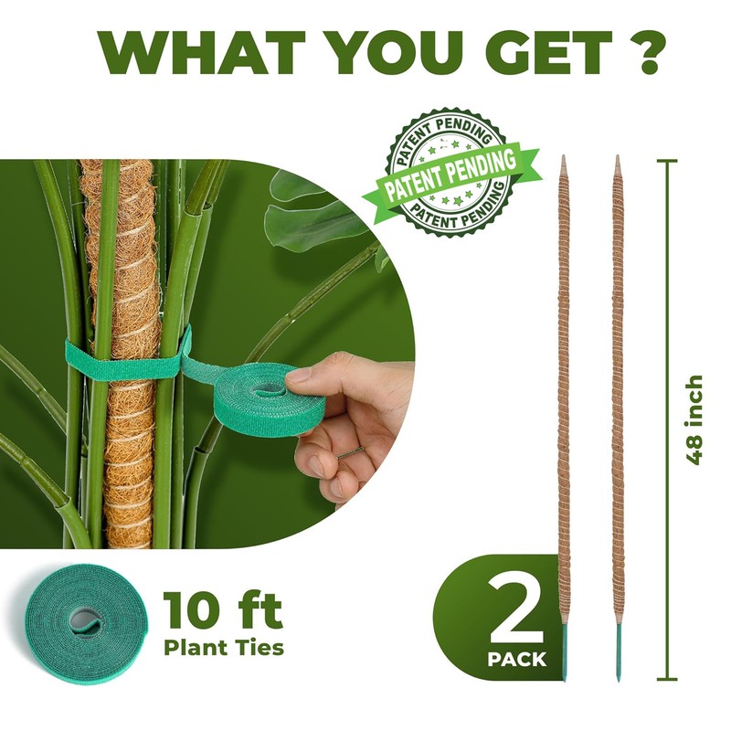 2 Pack 48 Inch Bendable Moss Pole Monstera Plant Support Stakes for Indoor Plants - Tall Moss Stick Trellis for Potted Climbers - Stem Support Accessories for Climbing Houseplants