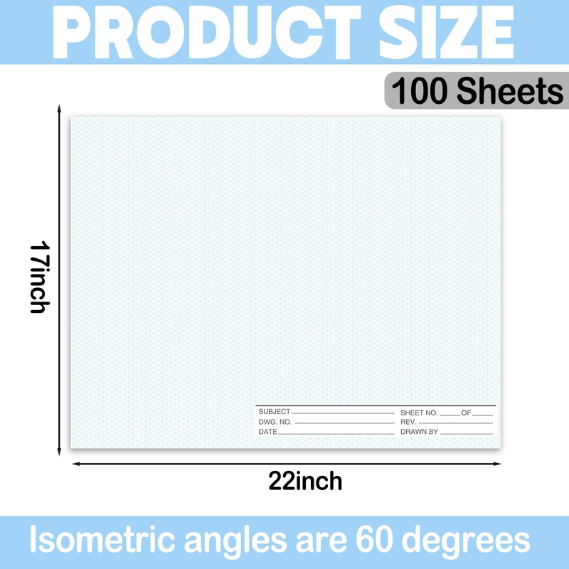 Isometric Graph Paper 22x17 Inches (100 Sheets) - Ideal for Engineering, Technical Drawing, Design, and 3D Mapping. High-Quality Grid Paper for Professionals, Students, and Contractors
