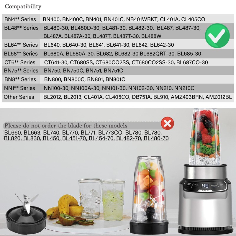 Fit for the following Nutri Ninja blenders: Nutri Ninja Kitchen Systems Auto-iQ Blenders, Compatible with Nutri Ninja Auto IQ BL2012, BL2013, BL480, BL480D, BL481, BL482-30, BL482-70, BL486CO, BL487, BL487A, BL488W, BL450, BL451-70, BL490, BL491, BL492, BL492W, BL640, BL641, BL642, BL642W, BL642Z, BL680A, BL682, NN100, NN100A, NN101, NN102
