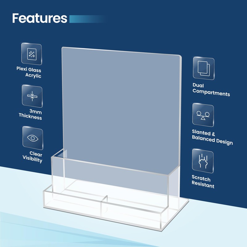 - SPACE SAVING Our Brochure holder with business card pocket combines two holders in one compact unit, perfect for countertops, reception desks, and trade show booths