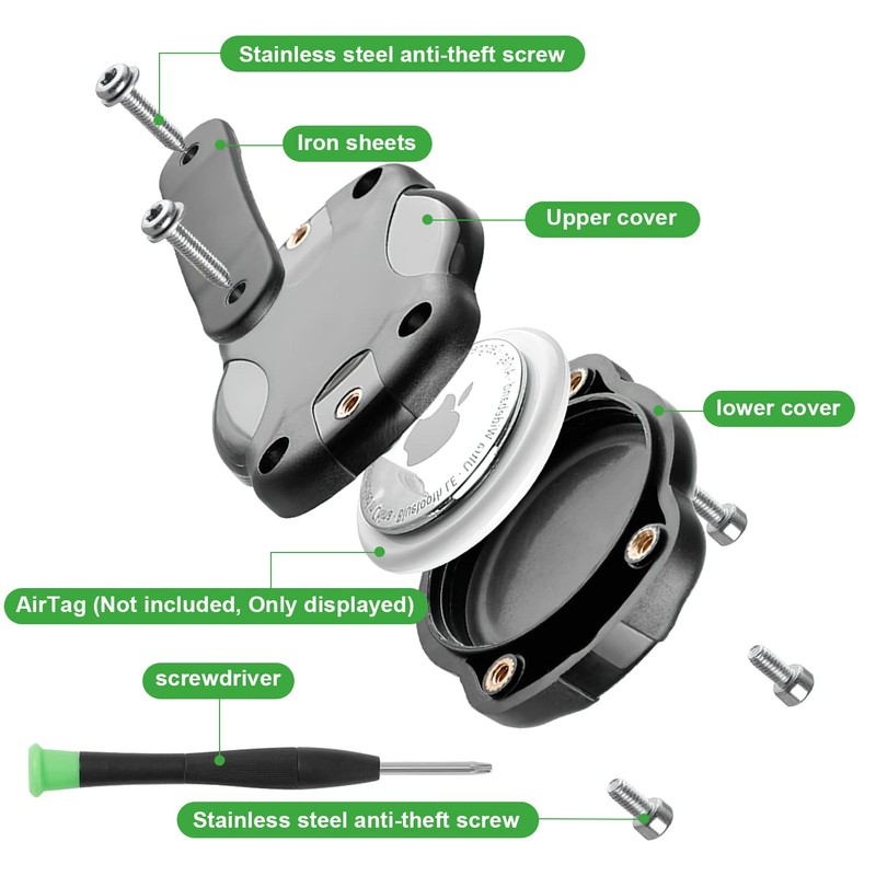 - 【SPECIAL SAFETY DESIGN】Special screw locking is used and can only be quickly installed and removed with the special tool included. It cannot be removed with ordinary tools. The Airtag Case attaches securely to the dog collar and won't dangle and fall off easily. Your lovely pets can wear the Airtag Holder everyday and it keeps airtag safe from his “friends” teeth and claws.