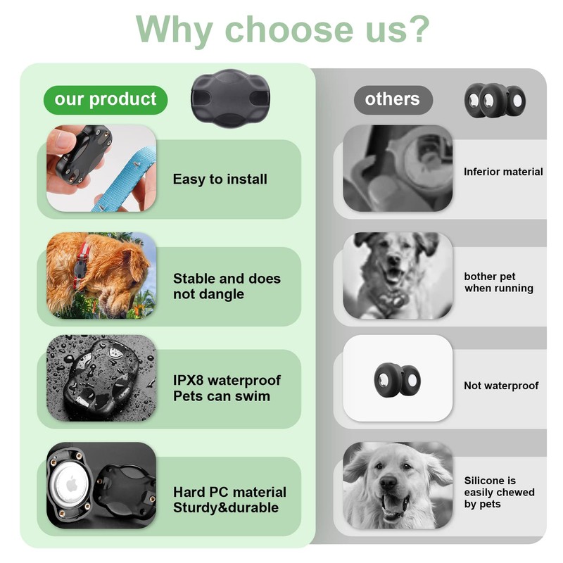 - 【100% WATERPROOF & RUSTPROOF】Does your dog often run into the water?With this waterproof air tag collar holder, you can feel free to let your dog sports in the water wearing airtag.Fully enclosed structure enables your airtag not to meet a little water, and it is equipped with stainless steel screws, so that your screws never rust, easy to removal next time.
