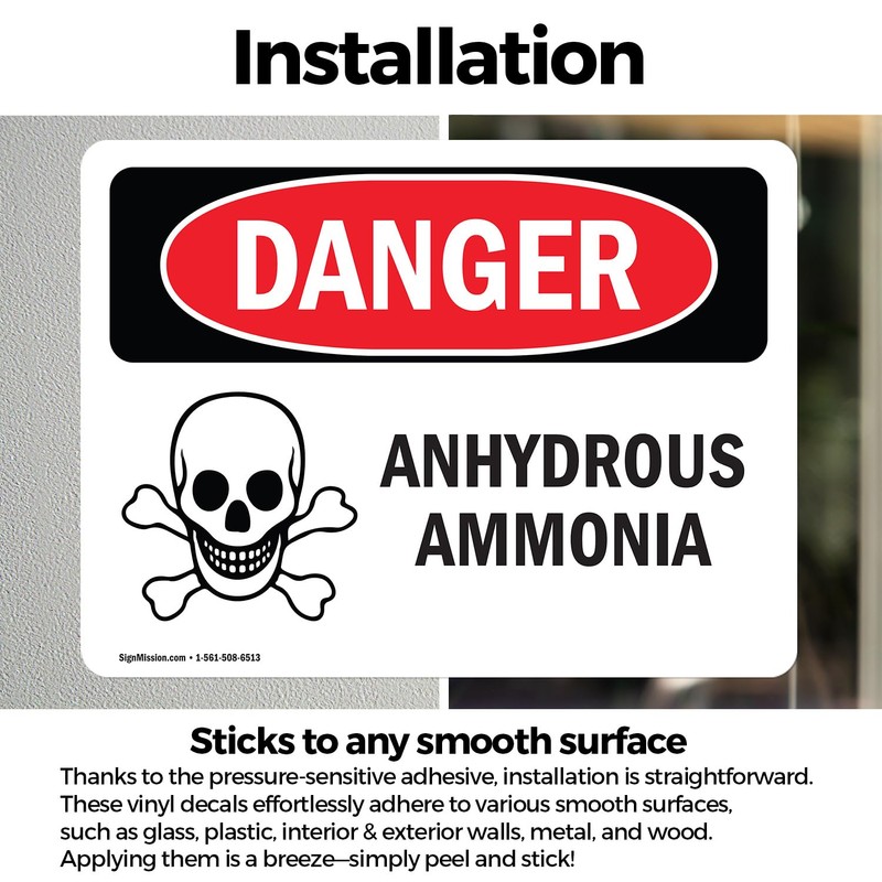 (2 Pack) Anhydrous Ammonia OSHA Danger Sign 5 Inch X 3.5 Inch Vinyl Label Decal Sticker Weather Resistant, UV Protected for Workplace, Business, and Construction Site, Made in the USA
