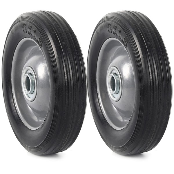 (2-Pack) AR-PRO 6” x 1.5” Flat Free Solid Rubber Wheel Assemblies - Replacement Hand Truck Wheels with Ball Bearings and 5/8” Bore Hole Diameter - Heavy-Duty Solid Rubber Wheels 132 lbs Load Capacity