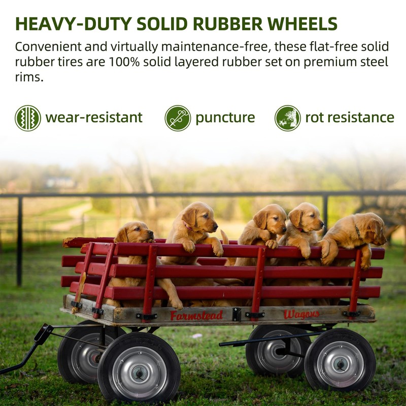 • HEAVY-DUTY SOLID RUBBER WHEELS - Convenient and virtually maintenance-free, these flat-free solid rubber tires are 100% solid layered rubber set on premium steel rims. They’re designed for heavy-duty use with their excellent wear, puncture, tear, and rot resistance. The solid metal rims and hubs also have high resistance to impact cracks, making them highly suitable for a wide variety of terrains.
