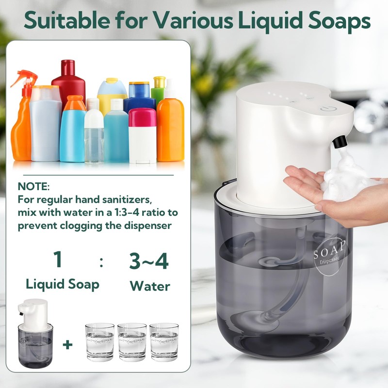 - 【IPX5 Waterproof and Leak-proof Foaming Soap Dispenser】The IPX5 waterproof design effectively safeguards the electric soap dispenser from soap and water corrosion. The rubber plug in the USB charging port further boosts its waterproof and leak-proof performance, ensuring its reliability even in damp conditions