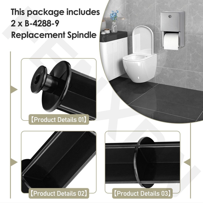 - CONSTRUCTION: Sturdy black spindle engineered for reliable performance and long-lasting durability in commercial restroom environments Built to withstand frequent paper roll changes and daily use in commercial bathroom settings