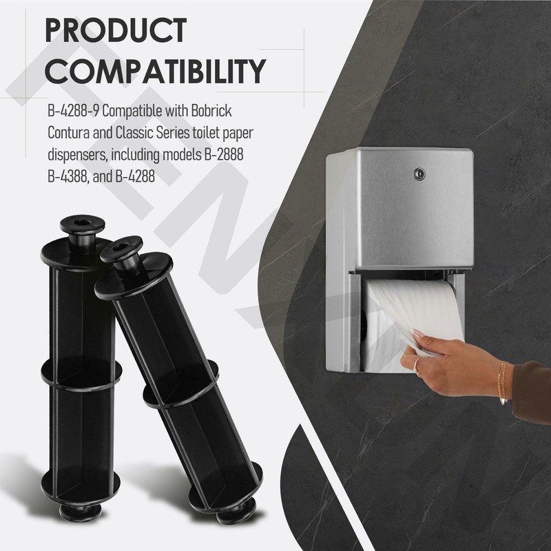 2 Pack B-4288-9 Replacement Spindle Compatible with Contura and Classic Series Dispensers B-2888, B-4388, B-4288, Black, Sturdy Replacement Spindle for use in Toilet Paper Dispensers