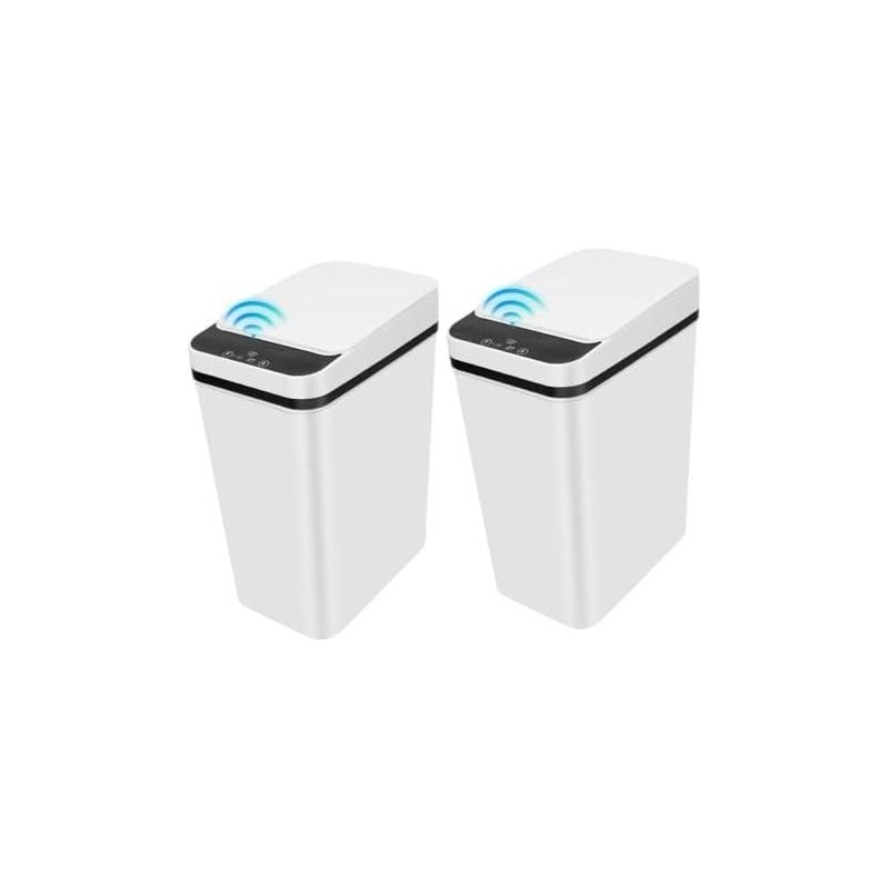 2 Pack Bathroom Trash can,Smart Touchless Trash Can,Automatic Motion Sensor Trash Bin with Lid,2.4 Gallon Garbage Can, Kitchen, Bathroom, Office, Bedroom Trash can (Black+Black) - Color: White+White