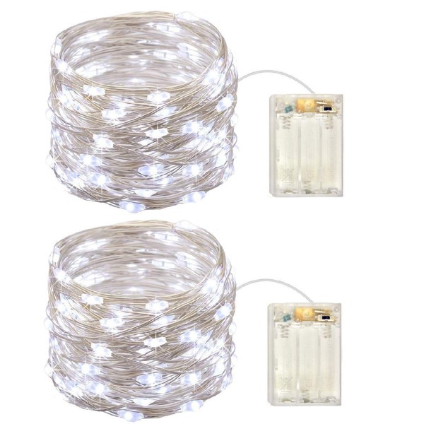2 Pack Indoor Battery-operated Led String Lights,Mini Led Fairy Lights with Timer 6 Hours on/18 Hours off for Christmas Party Wedding Bedroom Decorations,50 Count Leds,17 Feet Silver Wire,(Cold White)