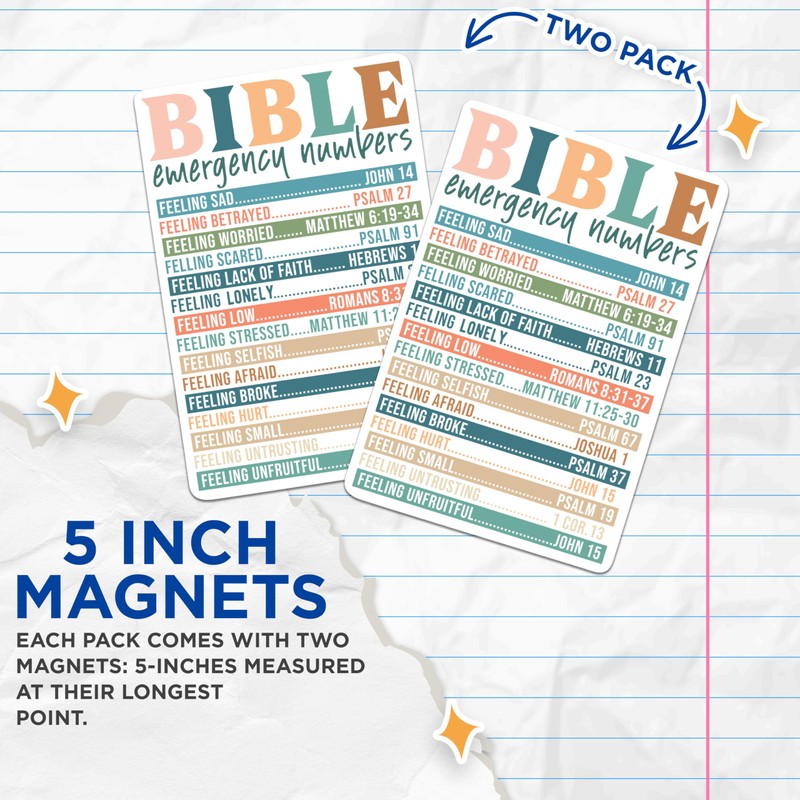 (2 Pack) Bible Emergency Numbers Magnets - Powerful and Empowering Bible Verses - 5 Inches On Longest Side - Premium Magnet - for Cars, Refrigerators, Toolboxes - Made in USA - MAG2164