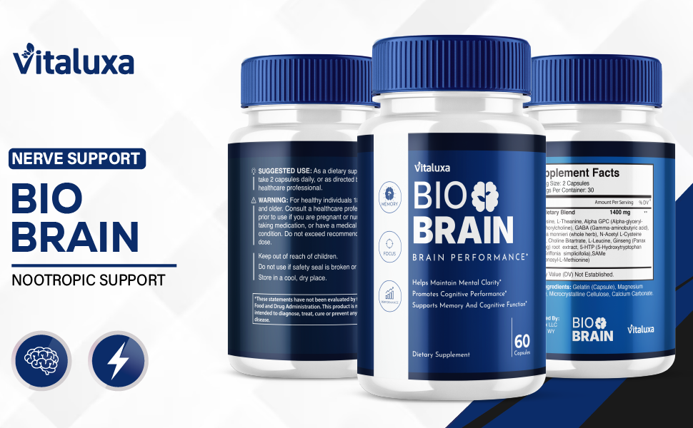 (2 Pack) Bio Brain Capsules, BioBrain Performance Memory Supplement for Mental Clarity, Health & Wellness, Advanced Nootropic Mind Power Supplement Pills for Better Focus, Attention, Calm Mood (120ct)