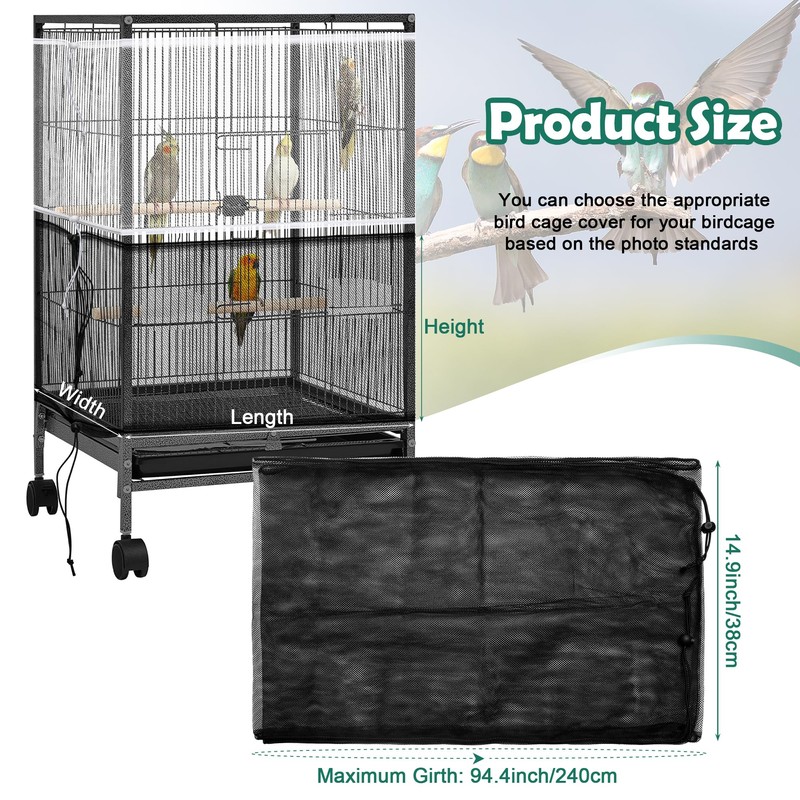 - Keep Air Circulation: Our bird cage net cover is made of premium mesh nylon, is soft and durable, will not block light, is dust-proof, and has a long use life