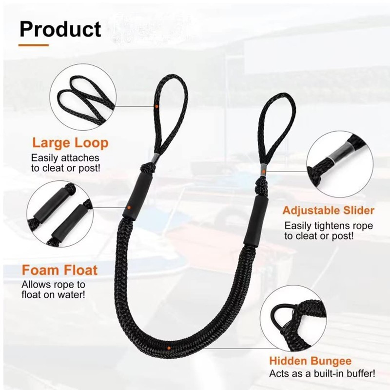 - Shock Absorbing: The bungee dock line have a built-in hidden bungee cord, that can absorbs shock to boats and docks.