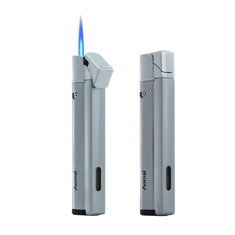 2 Pack Butane Refillable Torch Lighter Fuel Window Viewable Portable Single Jet Flame Adjustable (No Gas) (Silver)
