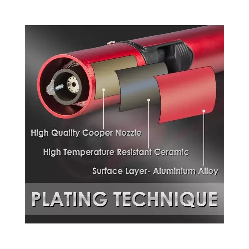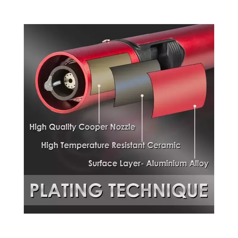 2023 UPDATED MODEL-PLATING TECHNIQUE: Unlike many other cheap lighters, this torch lighter is made of full metal (aluminum alloy) and adopted surface plating technique. The lighter has three-layers of safety protection and high temperature resistant ceramic