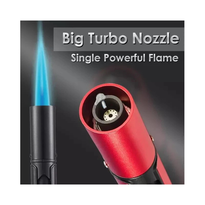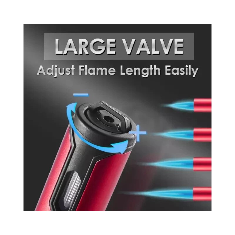 STURDY TURBO NOZZLE: The jet flame lighter uses sturdy copper turbo nozzle, can create a continuous single flame up to 2.8 inches with a temperature of 2800°F. We have also added 2 cooling hole to allow it to cool faster and recover quickly to ensure long-term use