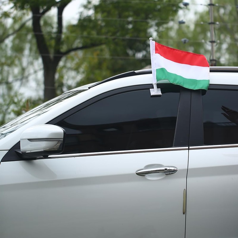 2 Pack Car Flags,Car Flag Hungary Flag Outdoor with Hungarians Flag and Car Flag Pole, Car Logo Window Clip Can be Clipped to Most Windows 14 inch Flag Pole and 16 x 10 inch Double Sided Flag.