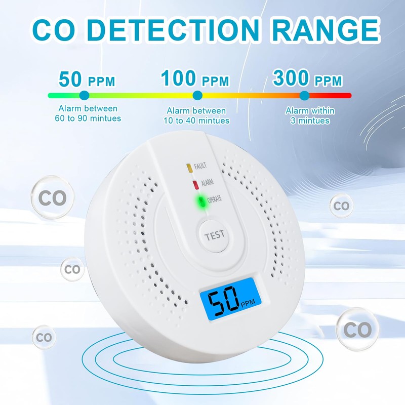 - Multiple Alarm Standards: Be alerted at different levels of carbon monoxide concentration. 50ppm sounds an alarm within 60 to 90 minutes, 100ppm sounds an alarm within 10 to 40 minutes, and 300ppm sounds an alarm within 3 minutes. Stay informed and take prompt action.
