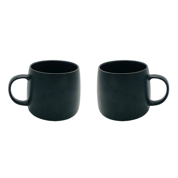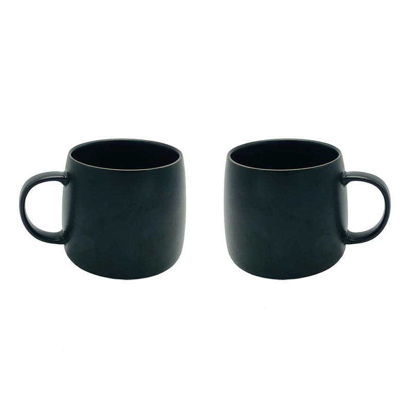 2 Pack Ceramic Cups, Porcelain Mugs With Handle, Smooth Ceramic Cups For Coffee, Tea, Milk, Cocoa (Black)