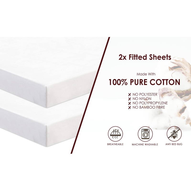2 Pack Chicco, Next To Me Crib Fitted Sheets | 100% Cotton, Soft, Breathable Sheets For Boy and Girl (85 x 51 cm White)