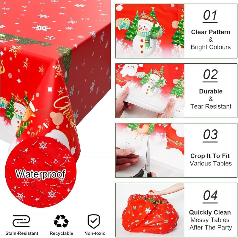 - ♻️Hight Quality:These Christmas disposable party Tablecloth Set is made of high-quality PE plastic material, which is environmentally friendly and sanitary;they are also convenient,lending more elegance to your party.