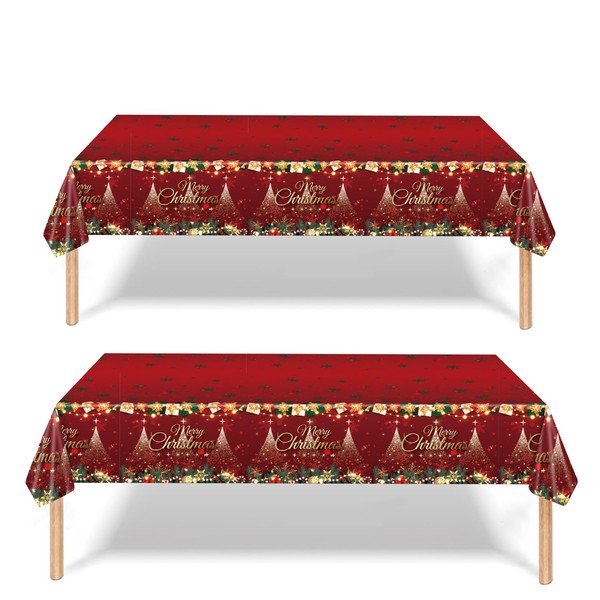 2 Pack Christmas Table Cloth Party,137x274cm Rectangle Large Plastic Tablecloth Holly Santa Party Tableware Decorations,Red Xmas Tablecovers Party for Winter Holiday Xmas Party Dinner Table Cloths