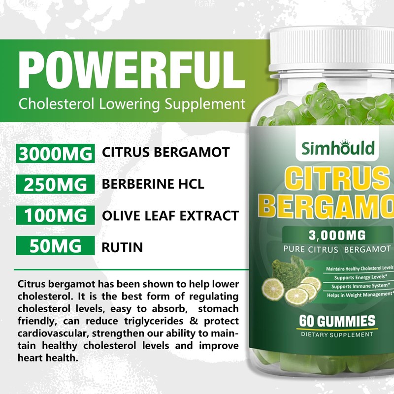 - [Why Choose Simhould ]: Each Simhould citrus bergamot qummies contains 3000mgcitrus bergamot,250mg berberine hc,100mg olive leaf extract ,50mg rutin,are an easy totake gummy helping to support heart and lmmune system. Simhould supplementsgummies are gluten-free, gelatine-free.And it's pectin-based.You can incorporatethem into your daily life.